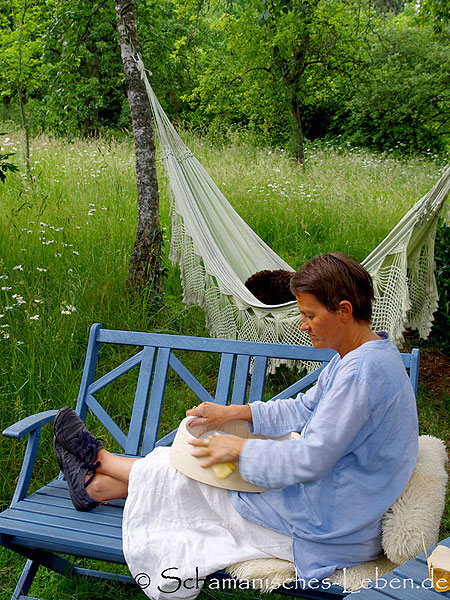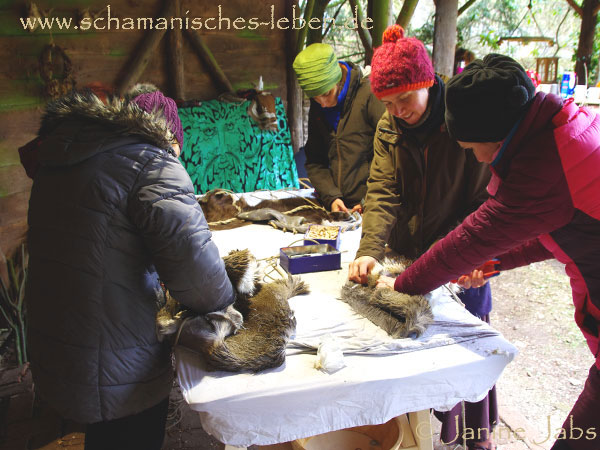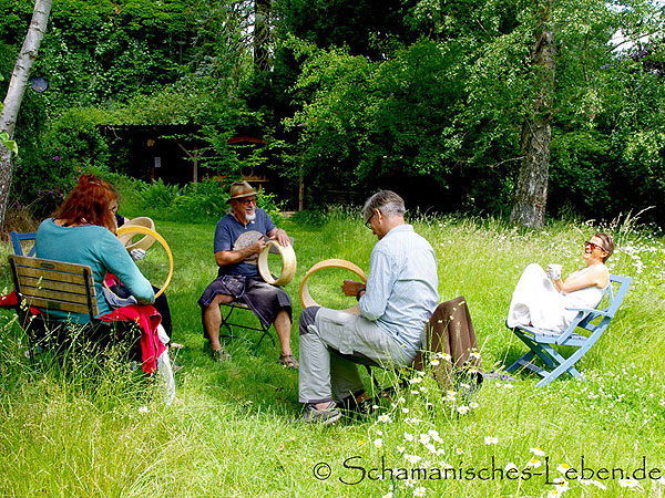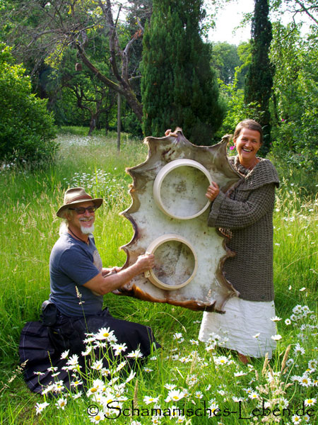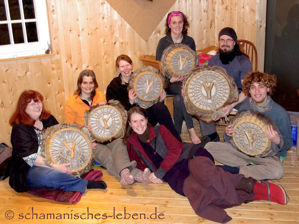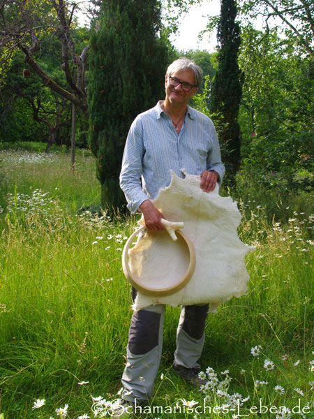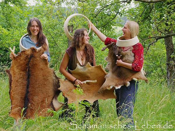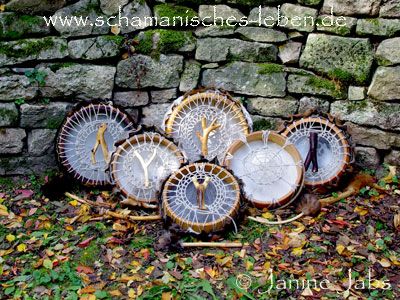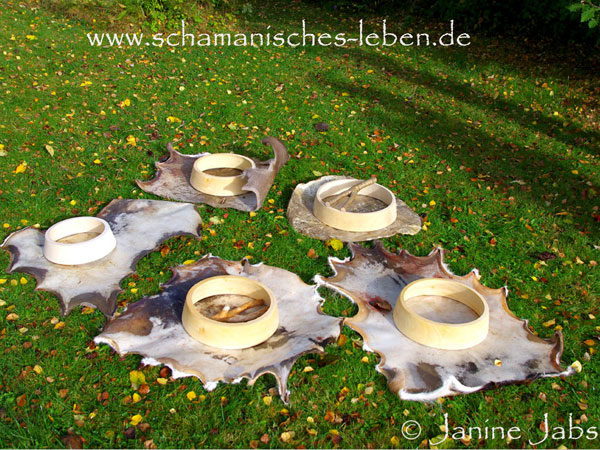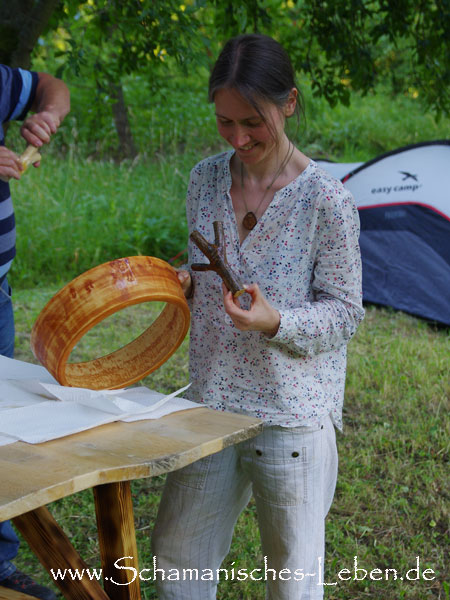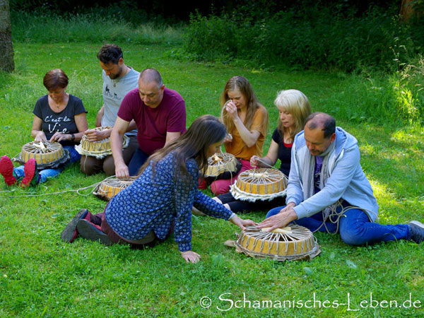 Dabei werden die Workshopteilnehmer im individuellen Gestaltungsprozess ebenso wie im Vorfeld bei der Auswahl der Materialien (Trommelrahmen und Tierhaut) schamanisch begleitet, u.a. nutzen wir hierfür das schamanische Handwerk der Andersweltreise.