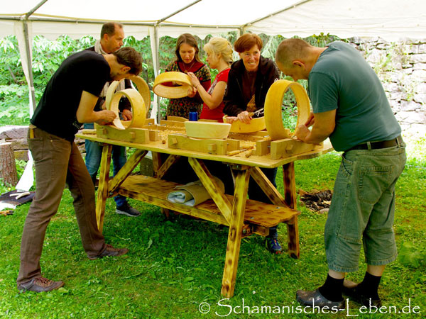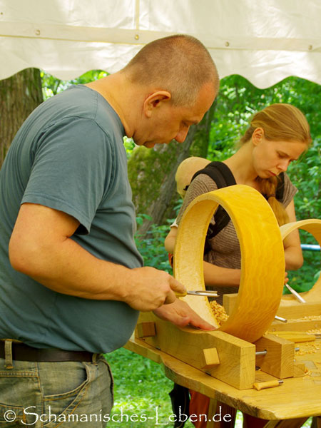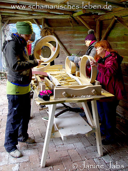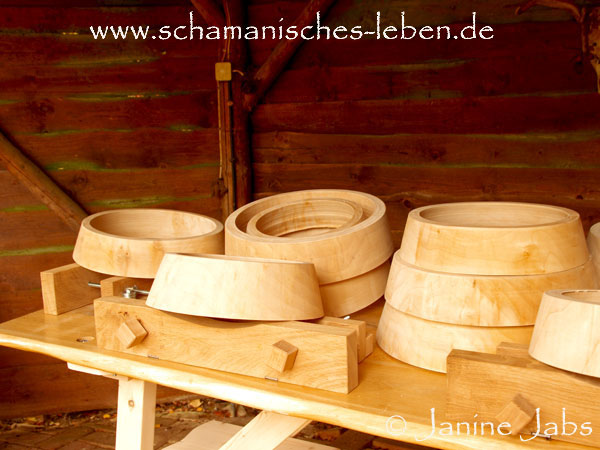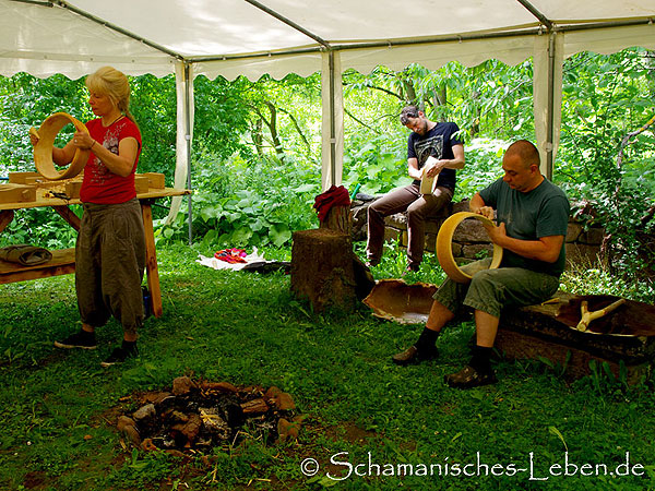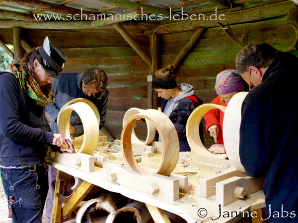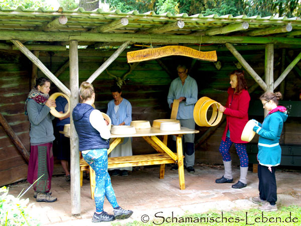 Seitdem gibt es für interessierte Menschen die Möglichkeit, sich während des Schamanischen Rahmentrommelbau-Workshops unter schamanischer und handwerklich fachkundiger Begleitung ihre eigene Rahmentrommel anzufertigen.